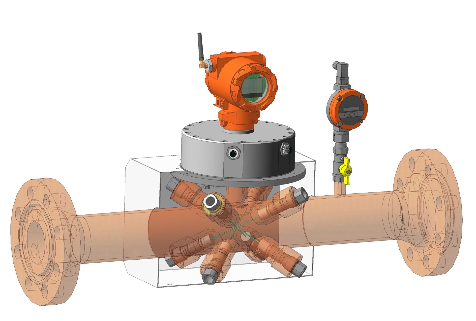 - В расходомерах предусмотрена возможность попарной замены ультразвуковых приемопередатчиков, под давлением от 6,3 МПа, в рабочем режиме без вывода его из эксплуатации